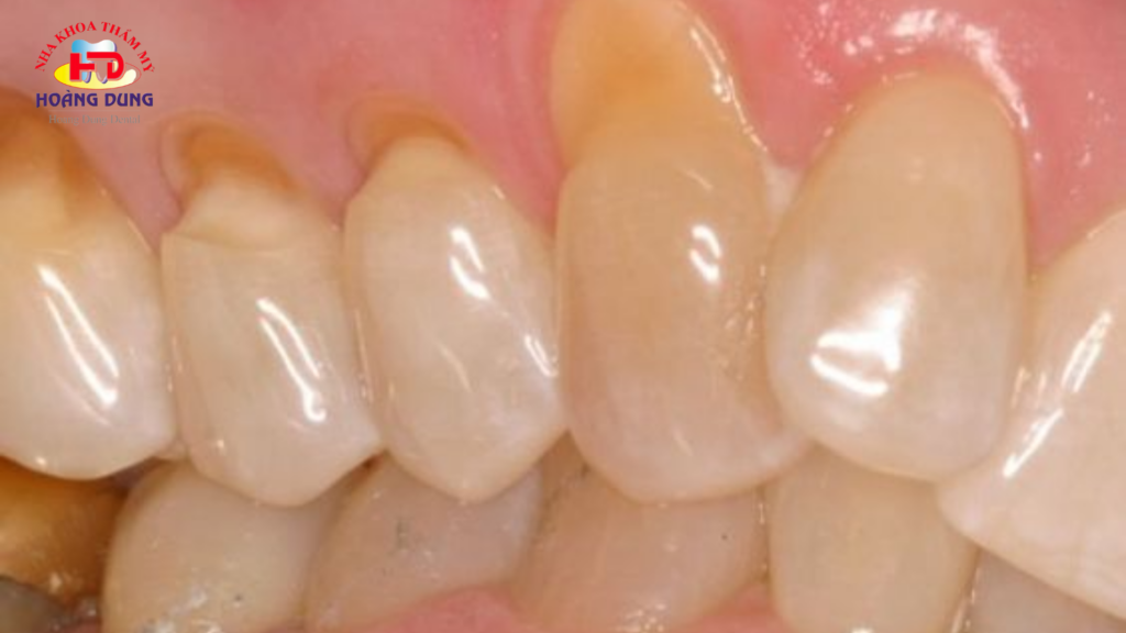 Lớp men răng bị mài mòn có thể làm răng bị thay đổi màu sắc. Răng không còn vẻ trắng sáng tự nhiên mà thường trở nên mờ hoặc có màu vàng.